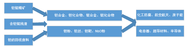 鉭具有熔點高、蒸汽壓低、冷加工性能好、化學(xué)穩(wěn)定性高、抗液態(tài)金屬腐蝕能力強、表面氧化膜介電常數(shù)大等一系列優(yōu)異性能。因此,鉭在電子、冶金、鋼鐵、化工、硬質(zhì)合金、原子能、超導(dǎo)技術(shù)、汽車電子、航空航天、醫(yī)療衛(wèi)生和科學(xué)研究等高新技術(shù)領(lǐng)域有重要應(yīng)用。 世界上50%-70%的鉭以電容器級鉭粉和鉭絲的形式用于制作鉭電容器。由于鉭的表面能形成致密穩(wěn)定、介電強度高的無定形氧化膜,易于準確方便地控制電容器的陽極氧化工藝,同時鉭粉燒結(jié)塊可以在很小的體積內(nèi)獲得很大的表面積,因此鉭電容器具有電容量高、漏電流小、等效串聯(lián)電阻低、高低溫特性好、使用壽命長、綜合性能優(yōu)異、其他電容器難以與之媲美,它被廣泛用于通訊(交換機、手機、傳呼機、傳真機等)、計算機、汽車、家用和辦公用電器、儀器儀表、航空航天、國防軍工等工業(yè)和科技部門。所以,鉭是一種用途極其廣泛的功能材料。